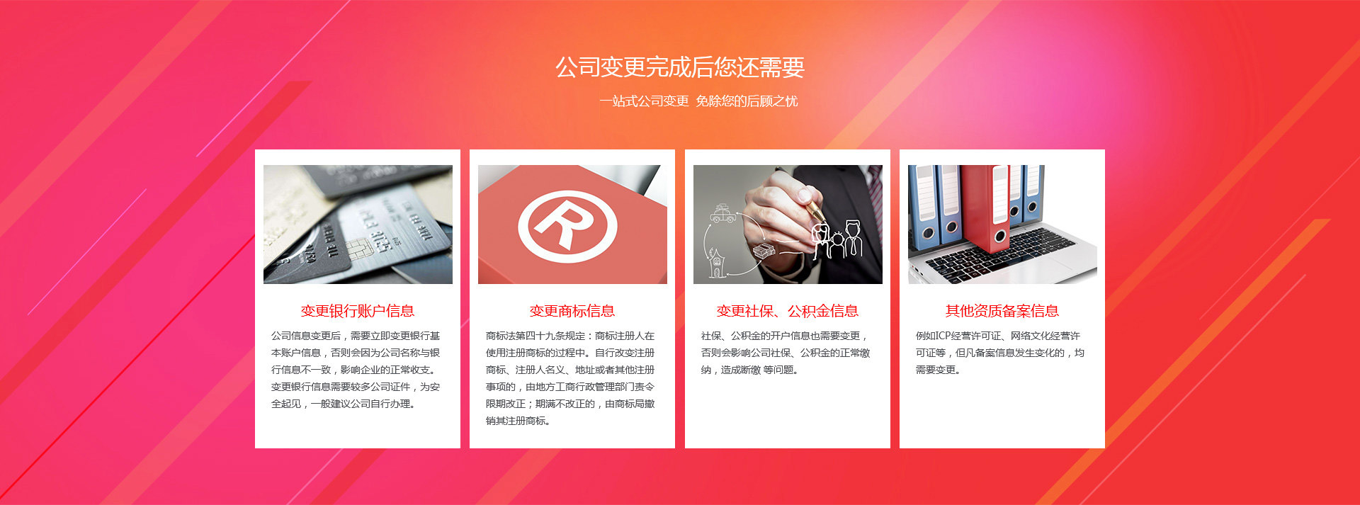 業(yè)務(wù)涉及:代辦各種營業(yè)執(zhí)照(商貿(mào)型、服務(wù)型、科技型、實業(yè)型企業(yè)等)及會計記賬(建賬建制、稅收籌劃、納稅申報、整理舊帳、所得稅匯算等)等咨詢;我公司以誠信為本,期待與您真誠合作!